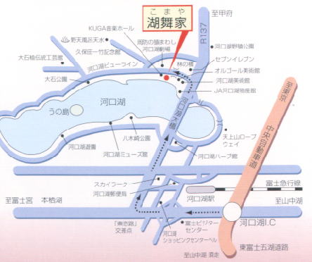 中央自動車道・河口湖ICで降り、約15分。