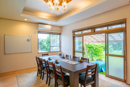 ご旅行のほか、研修や合宿、リモートワーク等様々な用途でご利用いただけます。(Wi-Fi、ホワイトボード、プロジェクター完備)