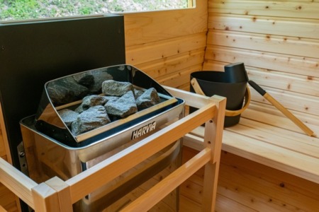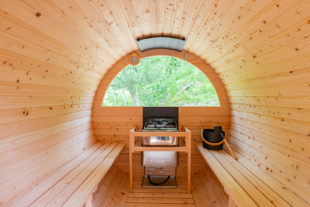 一番の見どころは裏庭の“バレルサウナ”。