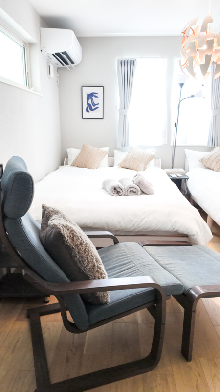 まるごと貸切で、3つの寝室を備えた広々とした空間を、気兼ねなくゆったりとお過ごしいただけます。
