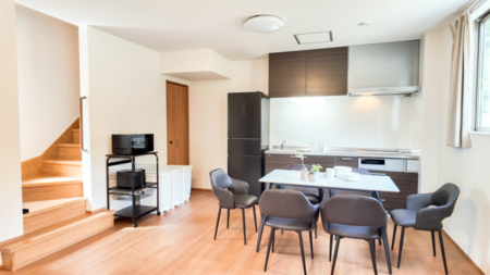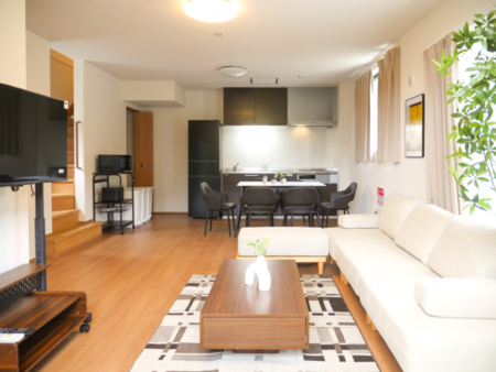 山梨県富士河口湖町の静かな自然に囲まれたエリアに位置する、一棟貸切タイプの宿泊施設です。