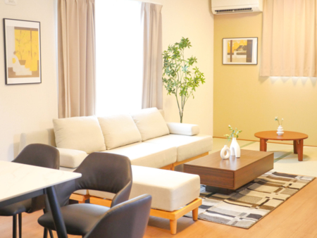 約76㎡のゆとりある室内には2つの寝室とリビングダイニングを備え、最大10名までご宿泊いただけます。