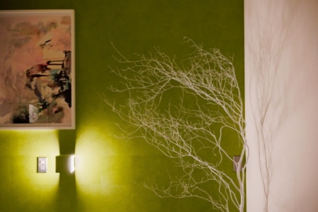 間接照明が柔らかく灯り、2m角の大テーブルと特大ソファでゆったりくつろげます。
