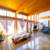 和洋いずれの雰囲気も楽しめる、広々落ち着く空間。囲炉裏を囲んで語らうもよし、薪ストーブを前にソファで寛ぐもよし。大人数でもゆったり滞在可。周辺施設も充実していて、アクティビティも楽しめます♪