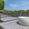 北側にある別荘には、大型サッシュを配し、自然光がたっぷりと差し込む心地よい空間がお客様を迎えます。室内には、曼荼羅を模した大谷石と鹿沼組子の美しいライティングが施され、幻想的な雰囲気を演出します。外に出れば、広大なバルコニーが広がり、ジャクジーバスやプ...
