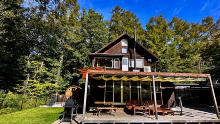 河口湖まで約300m、湖畔の広大な自然にひっそりと佇むBESSカントリーログハウスタイプの貸別荘【ふじやまべーす】は2023年7月にOPEN♪
