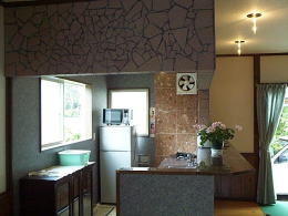調理器具・食器完備のカウンター付キッチン!使いやすさも抜群です。冷蔵庫、炊飯器、電子レンジ、フライパン、鍋、食器など各種そろっています。