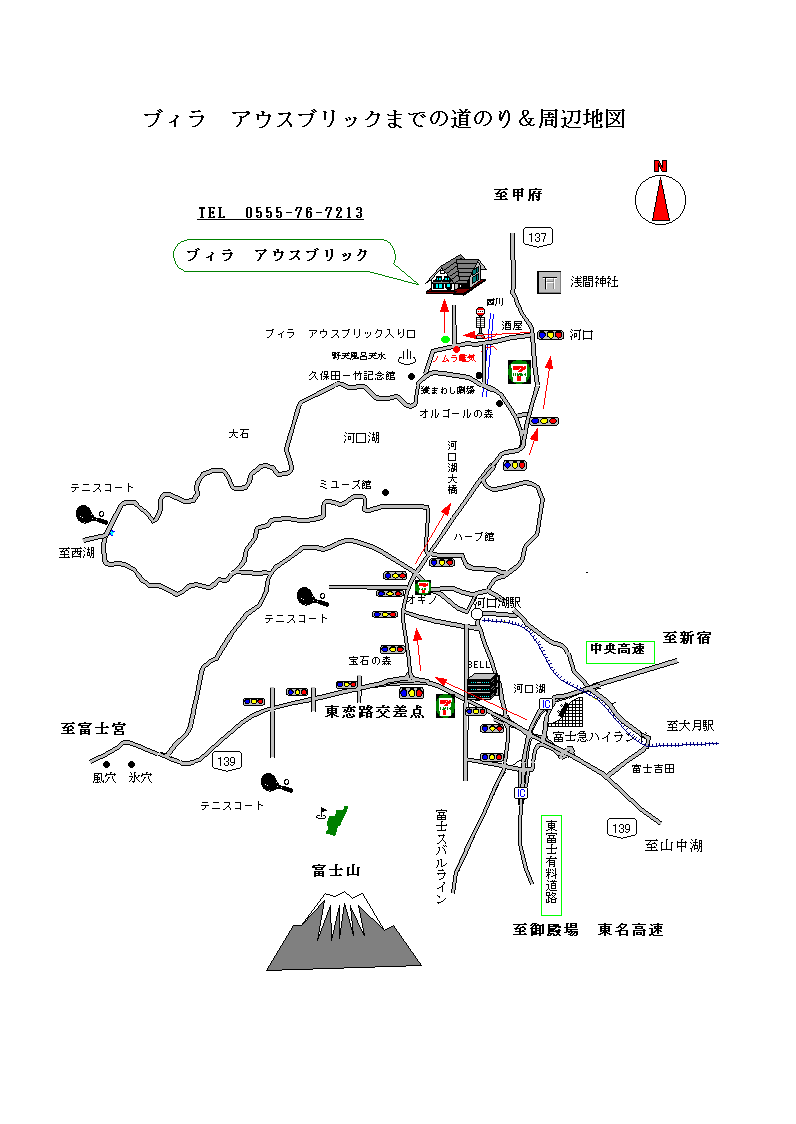 東富士五湖有料道路河口湖インターより約10分。