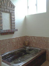 お風呂は棟の中にある内風呂で、温泉効能のある活性石温泉「ジェット風呂」です。