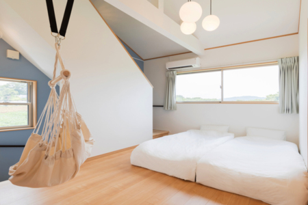 2階寝室3:シングルベッド2台、ハンモック ※廊下のフリースペースです。