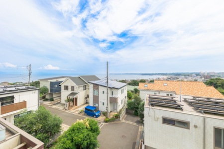 三浦海岸の高台にある、雄大な海を臨む新築の貸別荘です。風通しが良く、潮騒や電車の走る音、木々のざわめきも聞こえてくる旅情溢れる環境です。