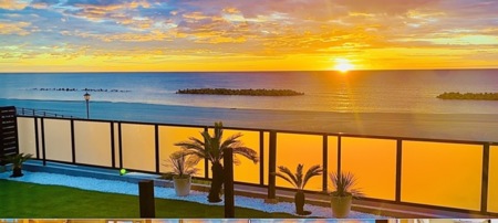 全棟全室から望む、煌めく海、幻想的な夕日。
