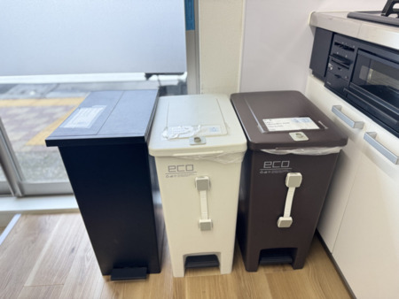 ・ゴミは「可燃ゴミ(燃えるゴミ)」「不燃ゴミ(燃えないゴミ)」「カン・ビン・ペットボトル」に分別して1Fキッチンのゴミ箱に入れてください。