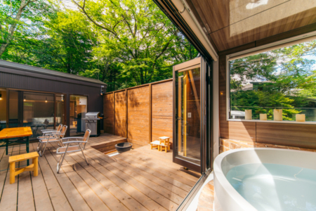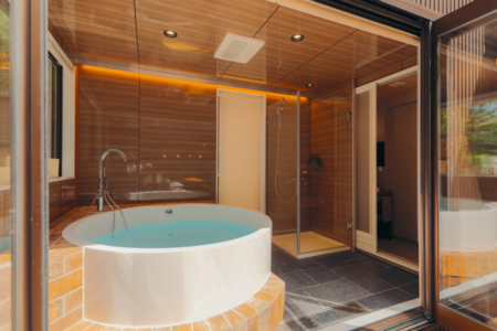 心地よい風がそよぐ開放的な空間で贅沢な時間を。シャワーにも近く、利便性も抜群!身体を芯から温め、心身をリフレッシュさせてください!