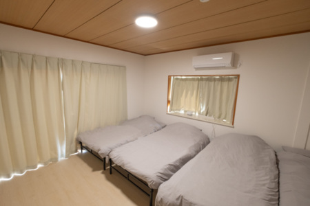 ベッド常時4台設置しており、5名様以上のご宿泊の場合は布団を別途お出ししております。