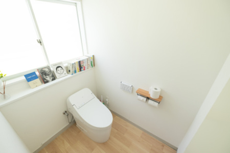 ウォシュレットあり。幼児用補助便座、サニタリーバッグ、本