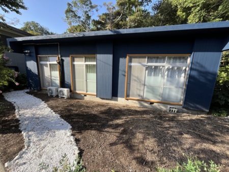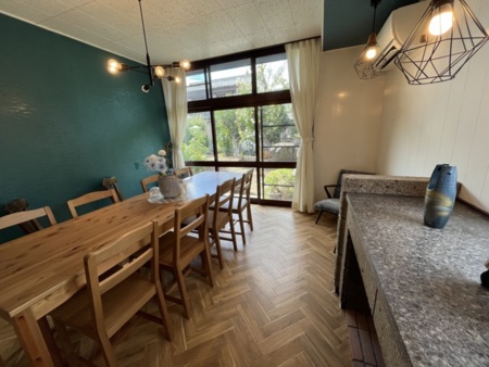 伊勢神宮・外宮と倭姫宮にほど近い、完全貸切型の宿泊施設「伊勢ブルーヴィラ 本館と離れ」。敷地約350㎡、室内約140㎡に及ぶ本館と離れの2棟構成で、最大15名までの宿泊が可能です。4つの寝室にダブルベッド6台、布団3組を備え、広々としたダイニングや2か所のキッチン、バスルーム、ランドリーを完備。インテリアは、部屋ごとに異なるテーマカラーで設計されており、和モダンや昭和レトロ、北欧ヴィンテージなど多彩な雰囲気を楽しめます。倭姫宮の森に隣接する離れからは、森林を望む“森ビュー”が広がり、BBQスペースやアウトドアリビングも設置予定。1日1組限定の贅沢な時間をお過ごしください。