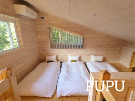 2階ロフトにベッド3台、敷布団3組合計6組ご用意しております。