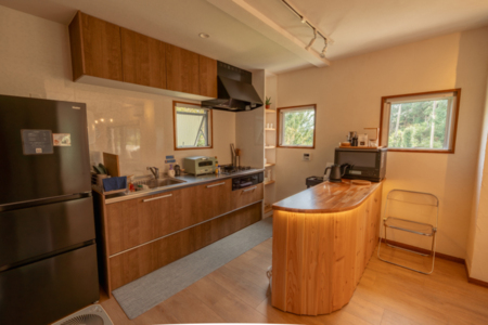 周囲にカフェや大室山(徒歩20-30分)、シャボテン公園、ドックラン、桜の里などがある便利立地にも関わらず、隣が林になっていてプライベート感を楽しめます。