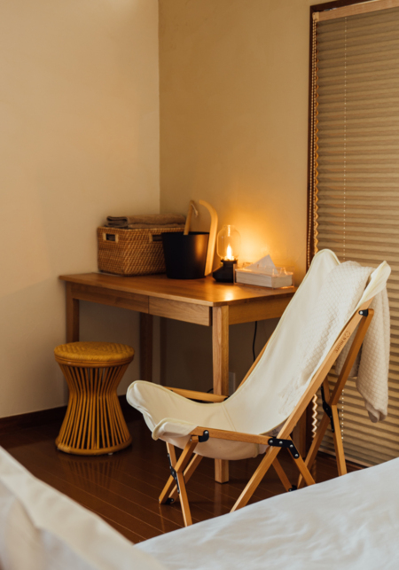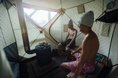本格フィンランド式のアロマロウリュサウナをお楽しみいただくことができます。薪のパチパチと燃える音をBGMに、海から吹く夜風が心地のよい整いへと導きます。
