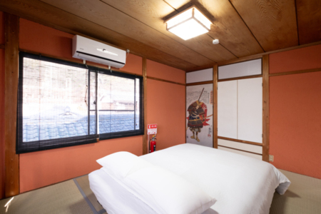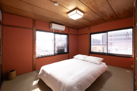 和室で敷きダブルマットレスでゆっくりと休んでいただけます。最大2枚まで用意可能。