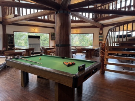 ・フリースペース(バーカウンター、薪ストーブ、ビリヤード台、ダーツ、天然木の大型テーブル複数、イス複数、子供イス1脚、アルコール缶ドリンク販売用冷蔵庫)、リードフック、カードゲームなど)