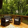 森の中に佇む静かなログハウス。変わりゆく空の色や鳥のさえずり、虫の声、風のそよぎを楽しめるウッドデッキを備えています。隣には広々とした庭があり、ブランコやハンモックもご用意。