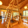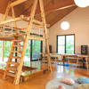 おうちの中には大きな滑り台、その滑り台をすべるためには、秘密基地みたいなロフトへ上がらなければいけません。木のパズルや絵本、野球盤、サッカー盤、ジェンガなど、...