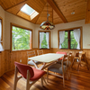 開放的なリビングとダイニングには多くの窓があり、森の壮大なパノラマビューを楽しめます。