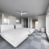 南房総の青い海を背景に、白い外観が一際目を引く千倉カトレア。ハイセンスな室内は、ドラマなどの撮影にも使用されるほど。