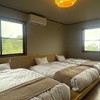 2階の洋室は2部屋あり、1部屋はダブルベッド2台、もう一部屋にはシングルベッド3台設置しています。
